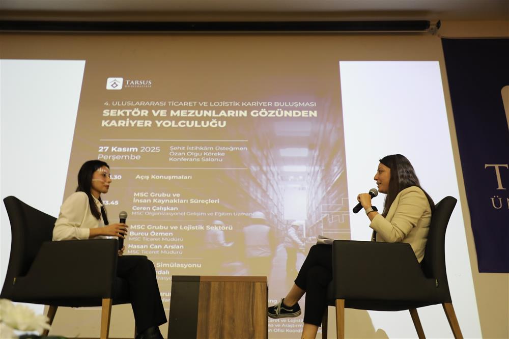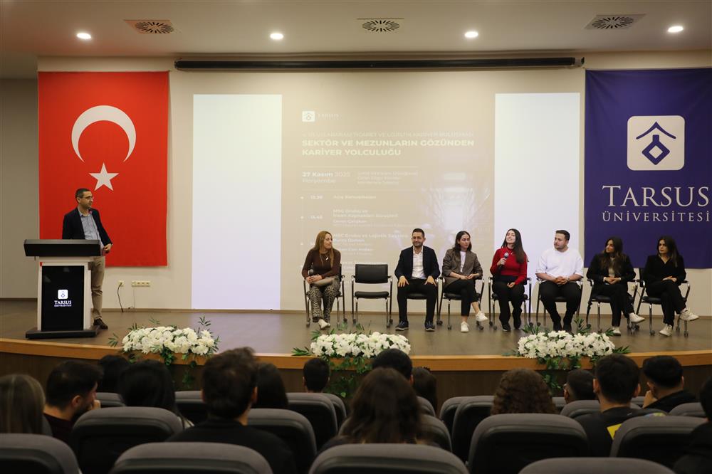 Tarsus Üniversitesi Uluslararası Ticaret ve Lojistik Uygulama ve Araştırma Merkezi, Uluslararası Ticaret ve Lojistik Bölümü ile Kariyer ve Mezun Ofisi işbirliğinde düzenlenen 4. Uluslararası Ticaret ve Lojistik Kariyer Buluşması, sektör temsilcileri, mezunlar ve öğrencileri bir araya getirerek yoğun bir katılımla gerçekleştirildi. Program kapsamında MSC Grubu yetkilileri ile bölüm mezunları, lojistik ve dış ticaret alanındaki güncel gelişmeleri, sektörün beklentilerini ve kendi kariyer yolculuklarını öğrencilerle paylaştı. Katılımcılar, iş yaşamına geçiş sürecinde karşılaşılan fırsatlar ve zorluklara ilişkin soruları yanıtladı. Etkinliğin devamında fuaye alınında mezun pilavı ikram edilirken öğrenci ve mezunlar bir araya gelerek network geliştirme imkânı buldular. Tarsus Üniversitesi Uluslararası Ticaret ve Lojistik Uygulama ve Araştırma Merkez Müdürü Doç.Dr. M.Sami SÜYGÜN, sektör bağlantılarını güçlendiren, mezun ve öğrencilerin aralarındaki bağı artıran ve öğrencilerin kariyer gelişimine katkı sağlayan bu tür organizasyonları sürdürmeye devam edeceklerini belirtti.